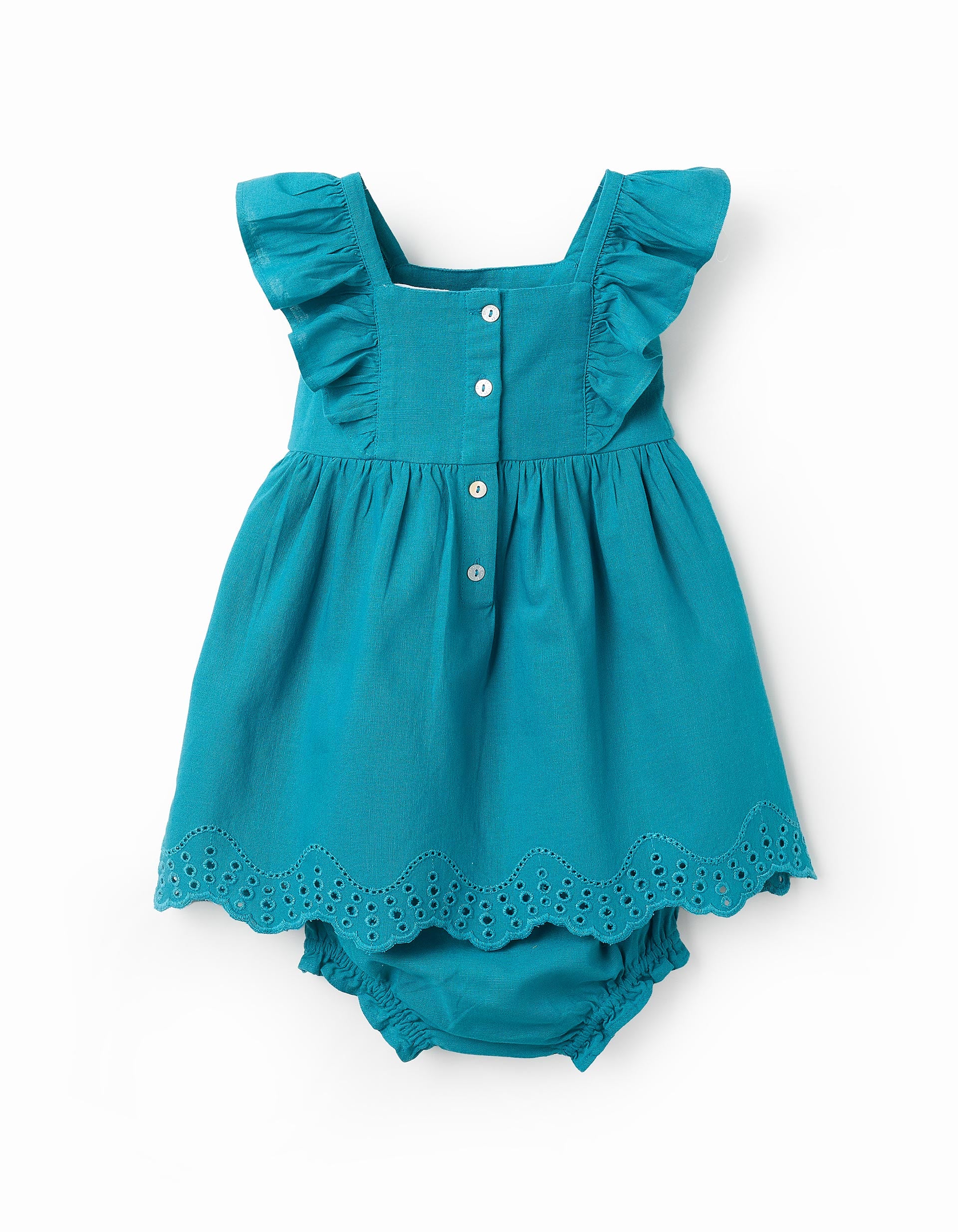 Robe + Bloomer avec Broderie Anglaise Bébé Fille ‘B&S’, Turquoise
