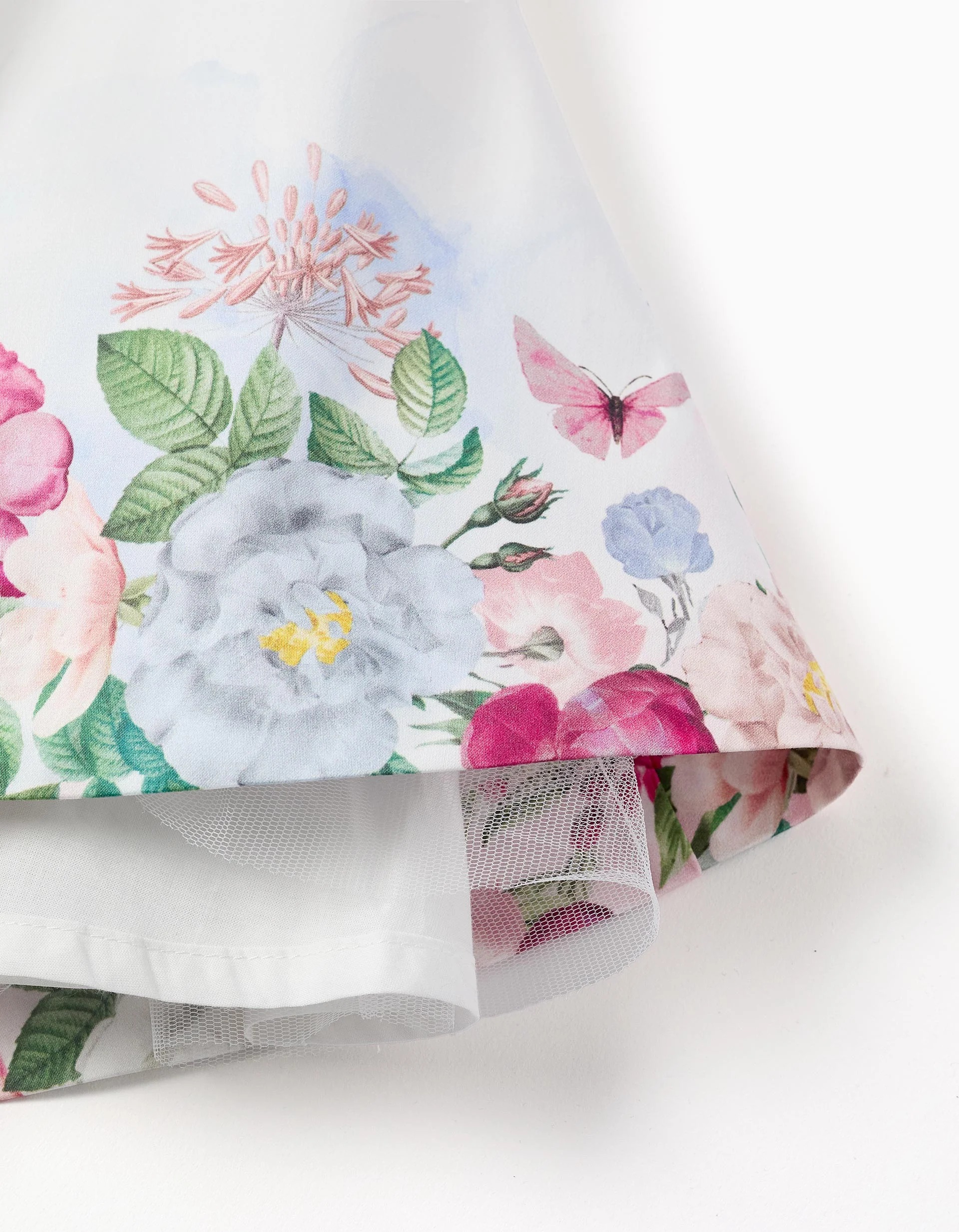 Robe en coton à fleurs et manches à volants pour bébé fille, blanche