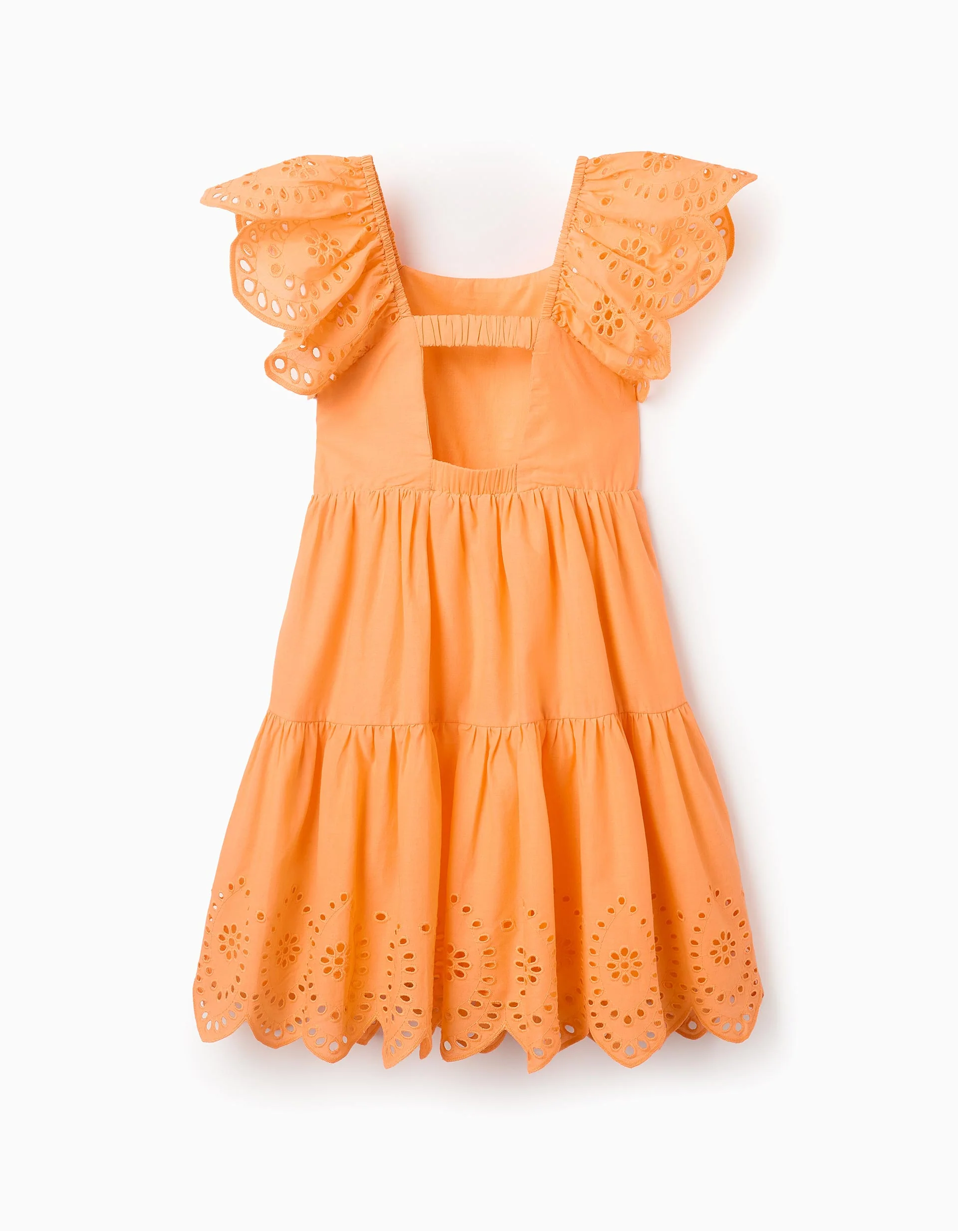 Robe en coton à volants et broderie anglaise pour fille, orange