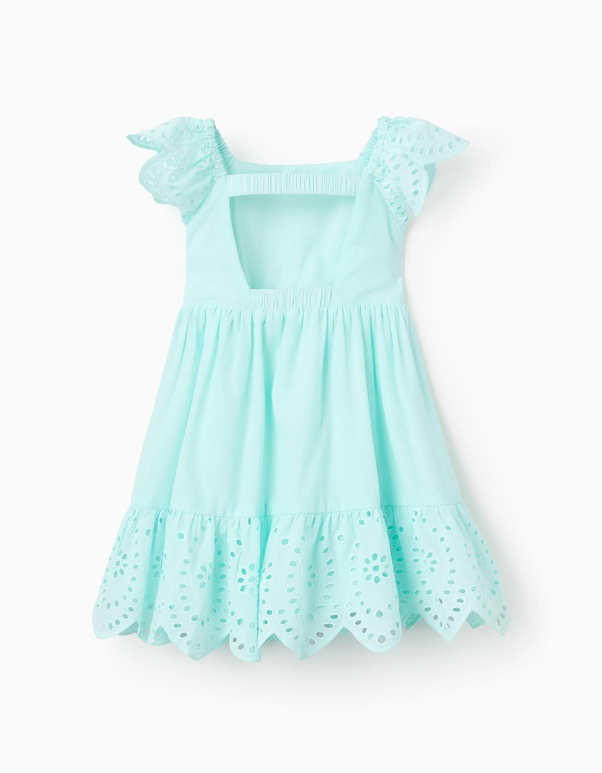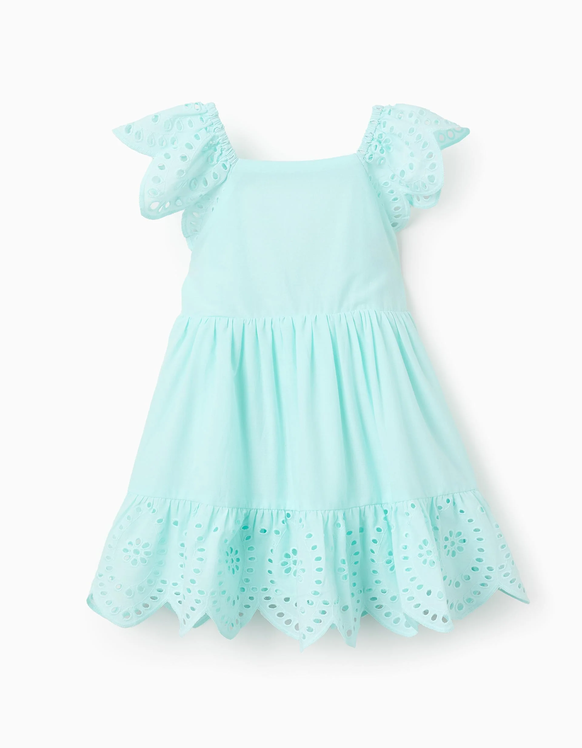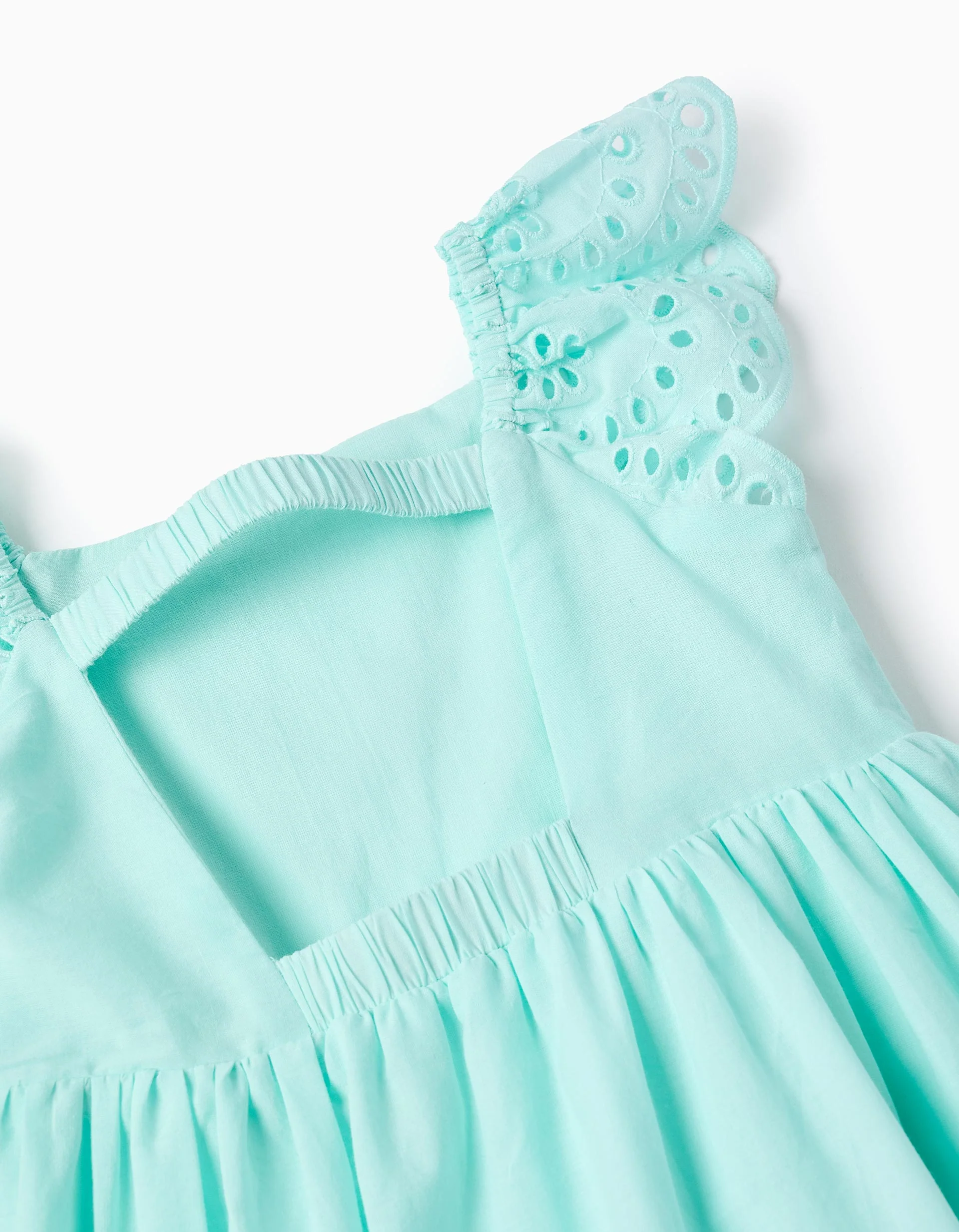 Robe en coton avec broderie anglaise pour bébé fille, bleu clair