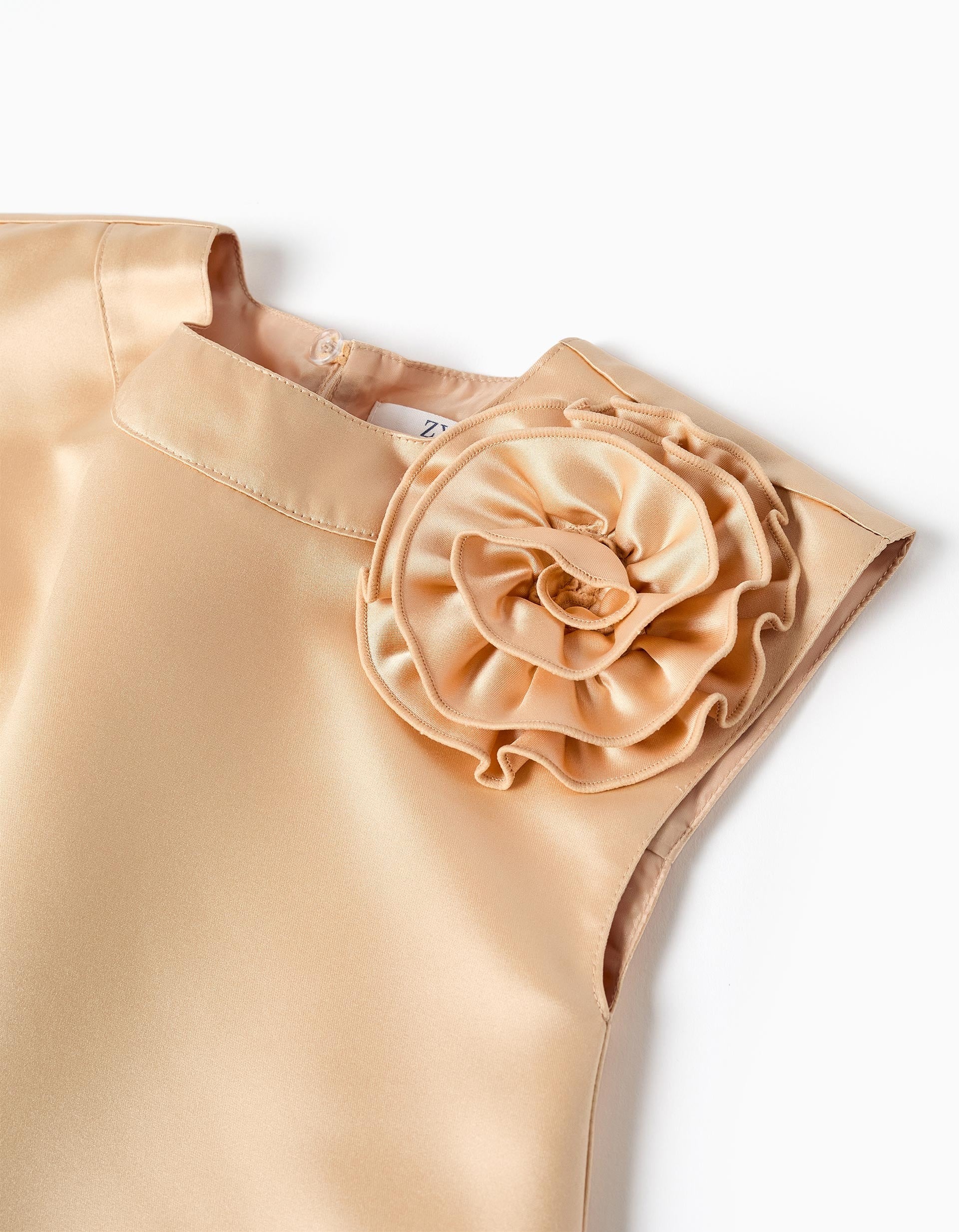 Robe longue en satin doré avec application de fleurs et doublure pour filles