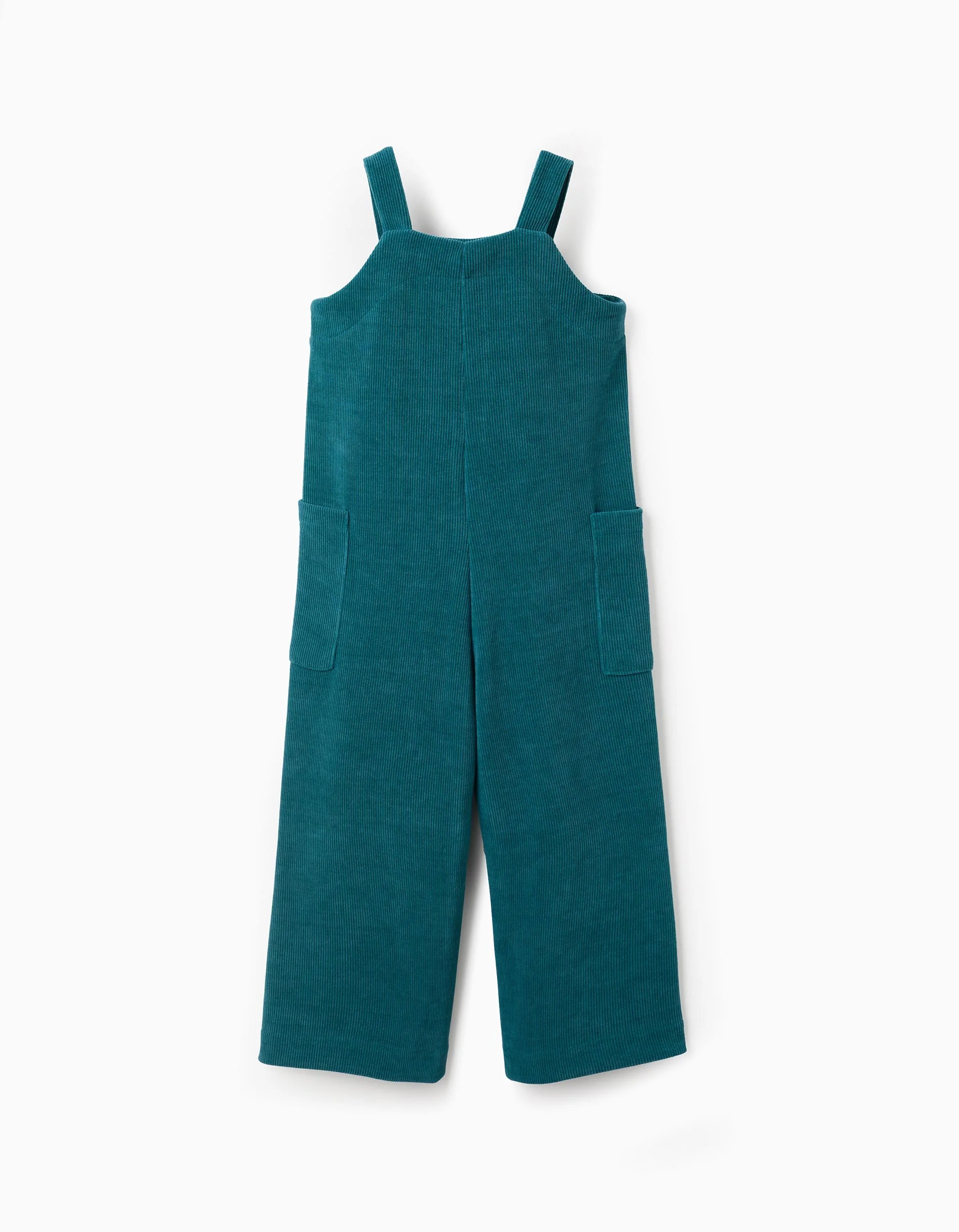 Salopettes en maille imbriquées avec poches patch pour filles, bleues