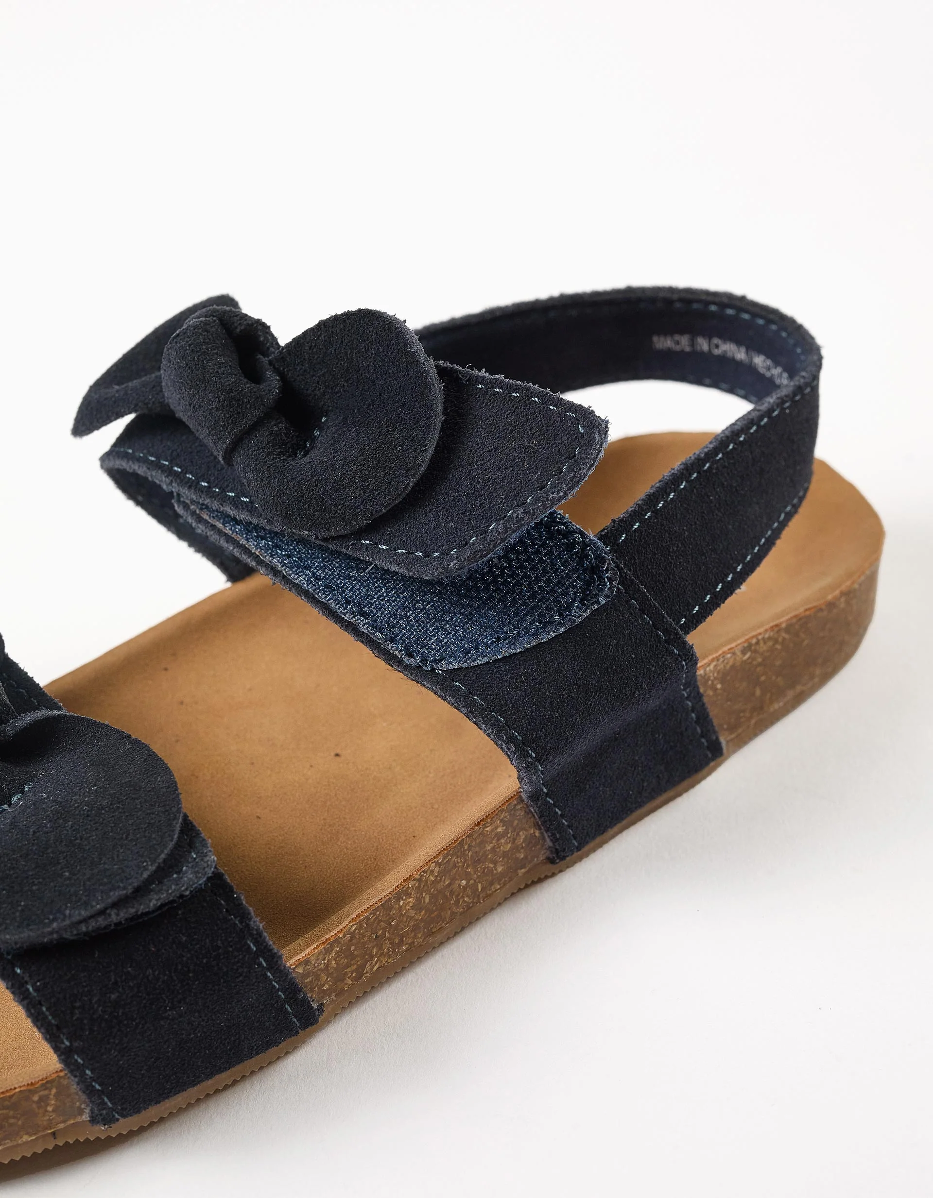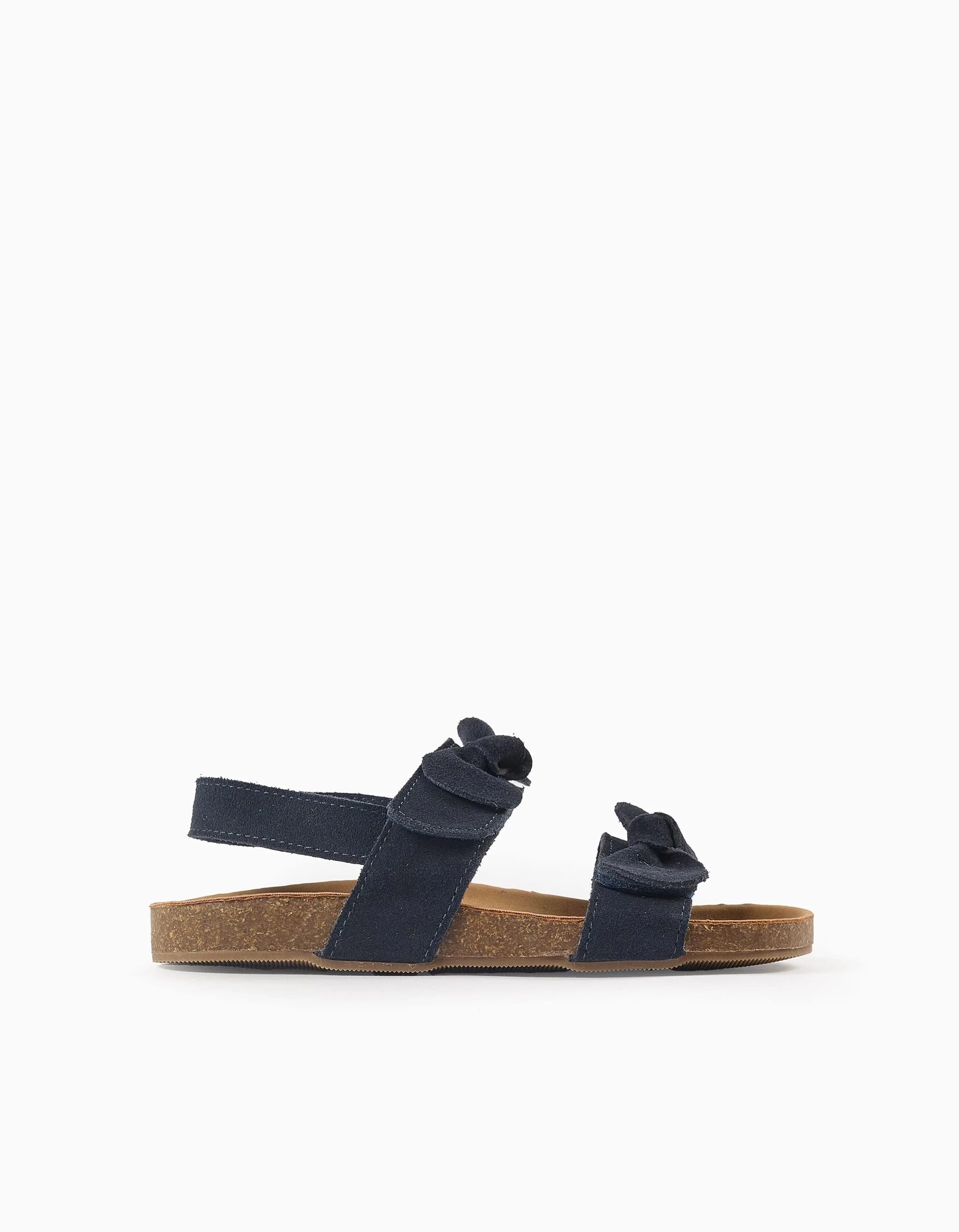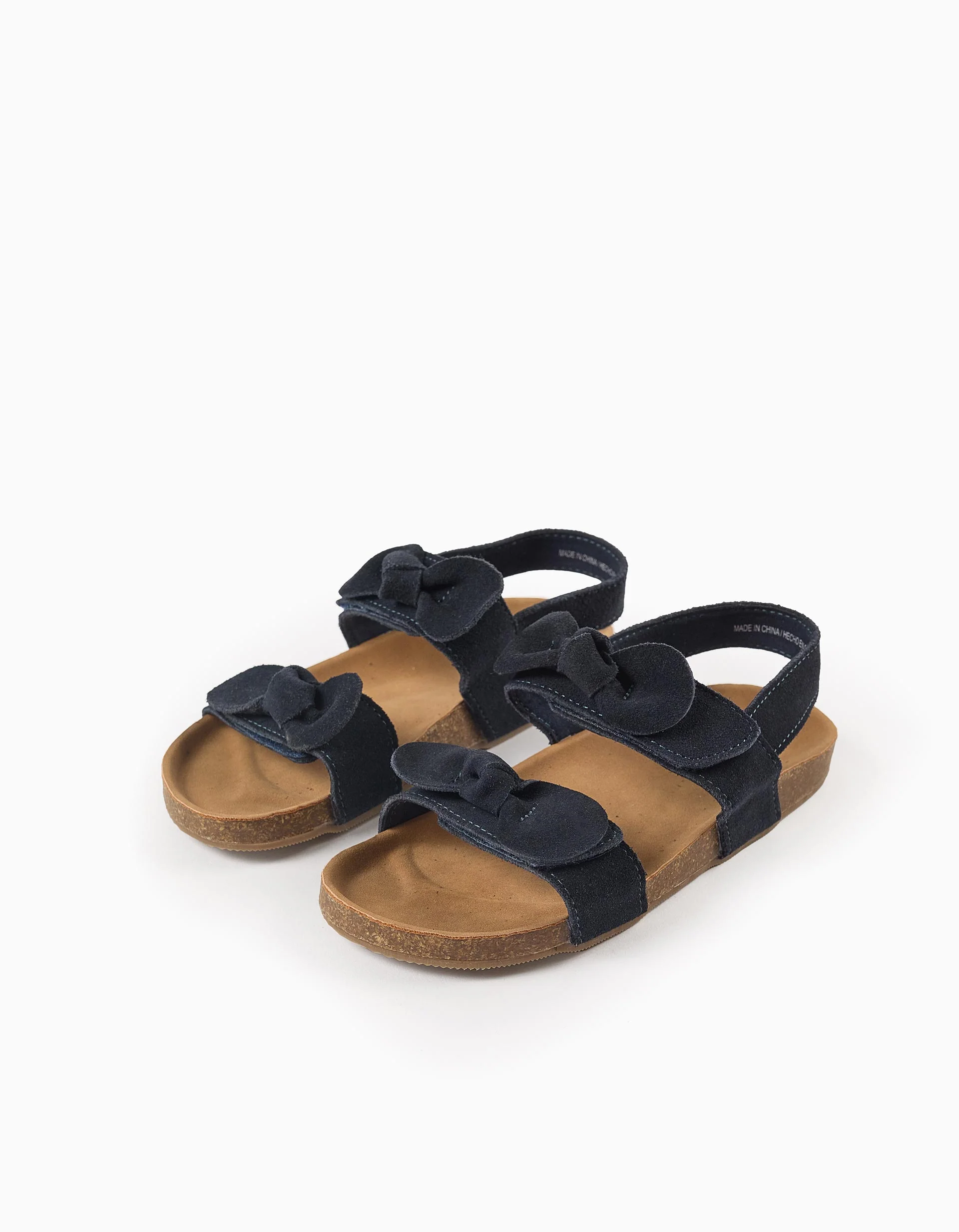 Sandales en daim avec nœuds pour fille, bleu foncé