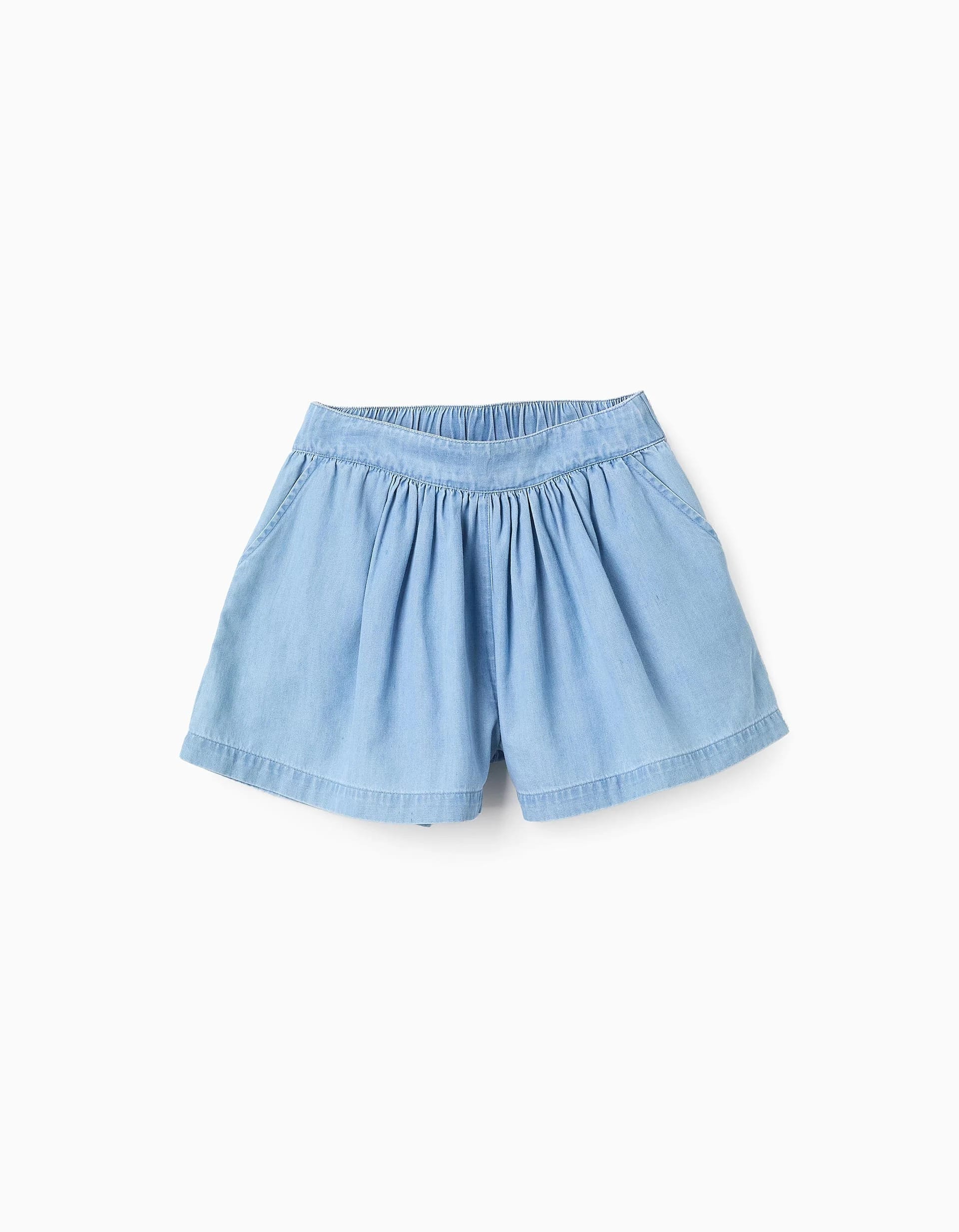 Short à détails froncés en denim léger pour fille, bleu