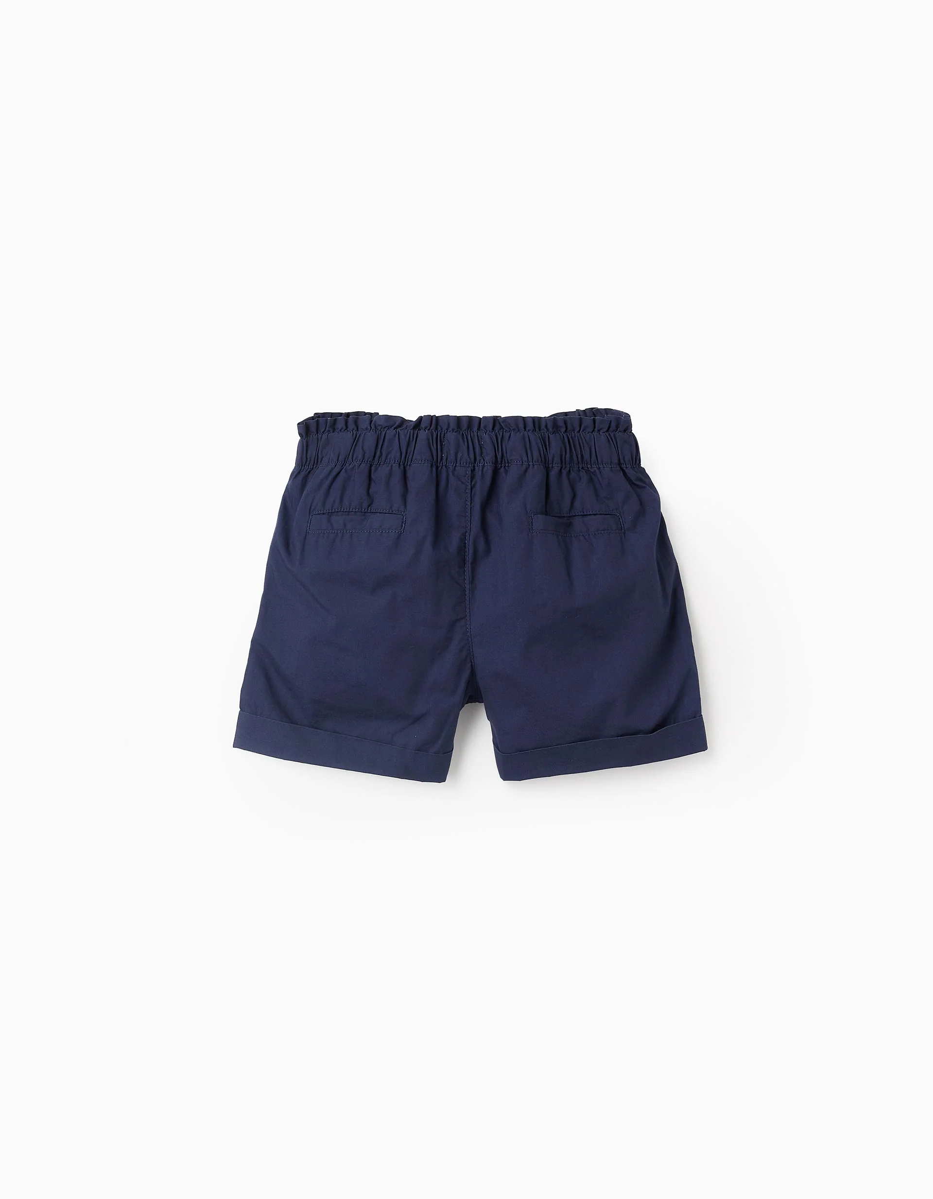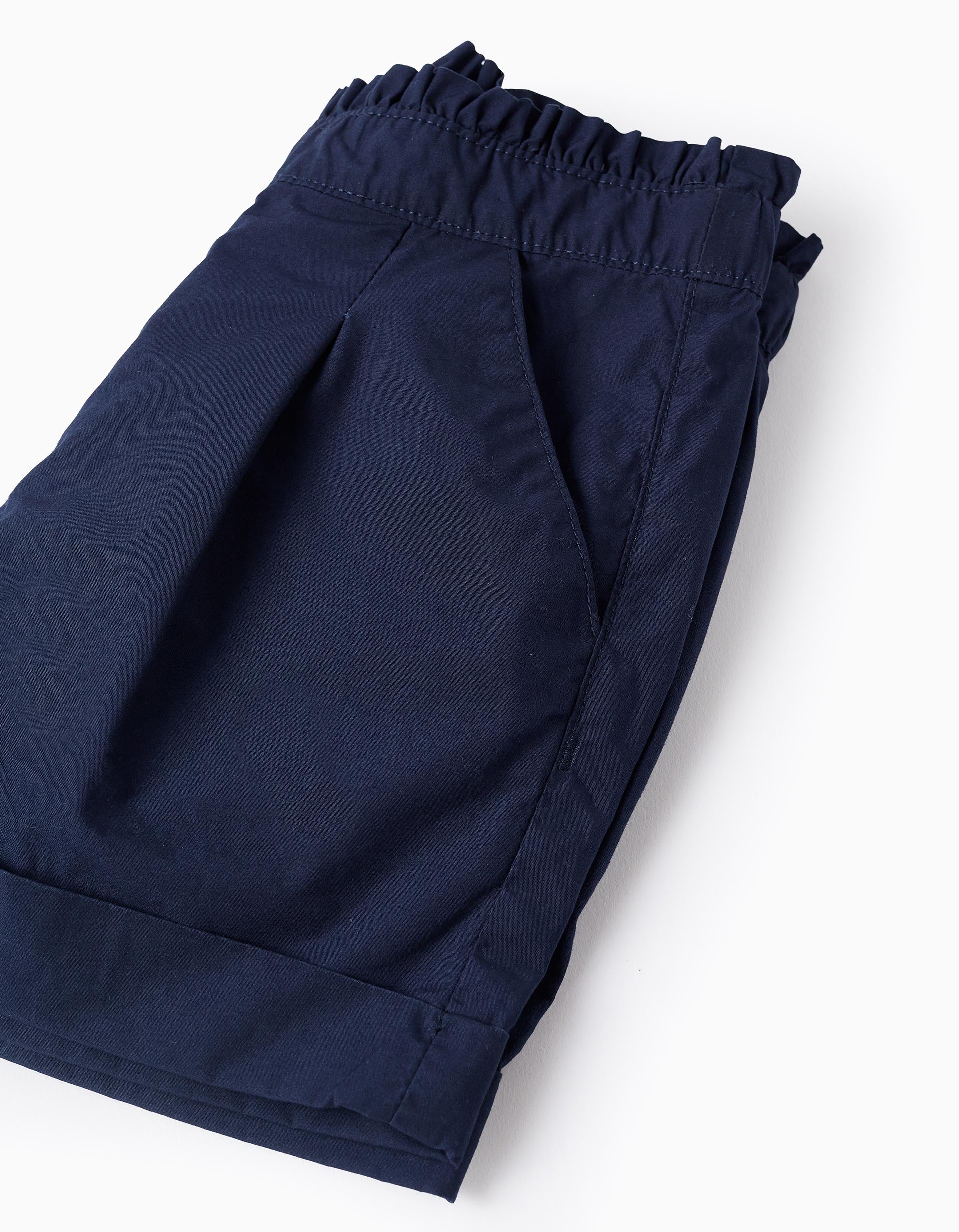Short en popeline à volants fille, bleu foncé