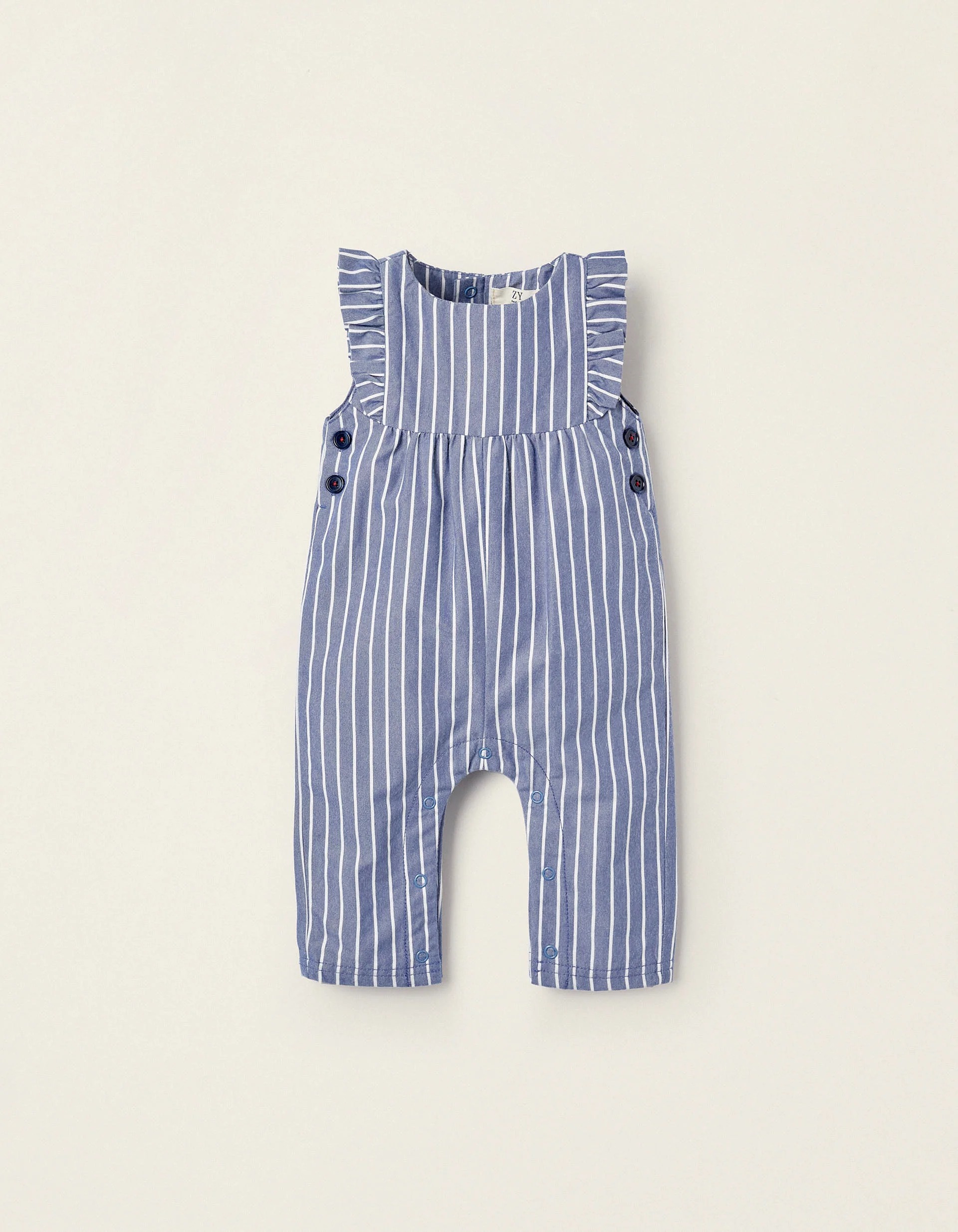 Striped Jumpsuit with Ruffles for Newborn Girls, Blue/White