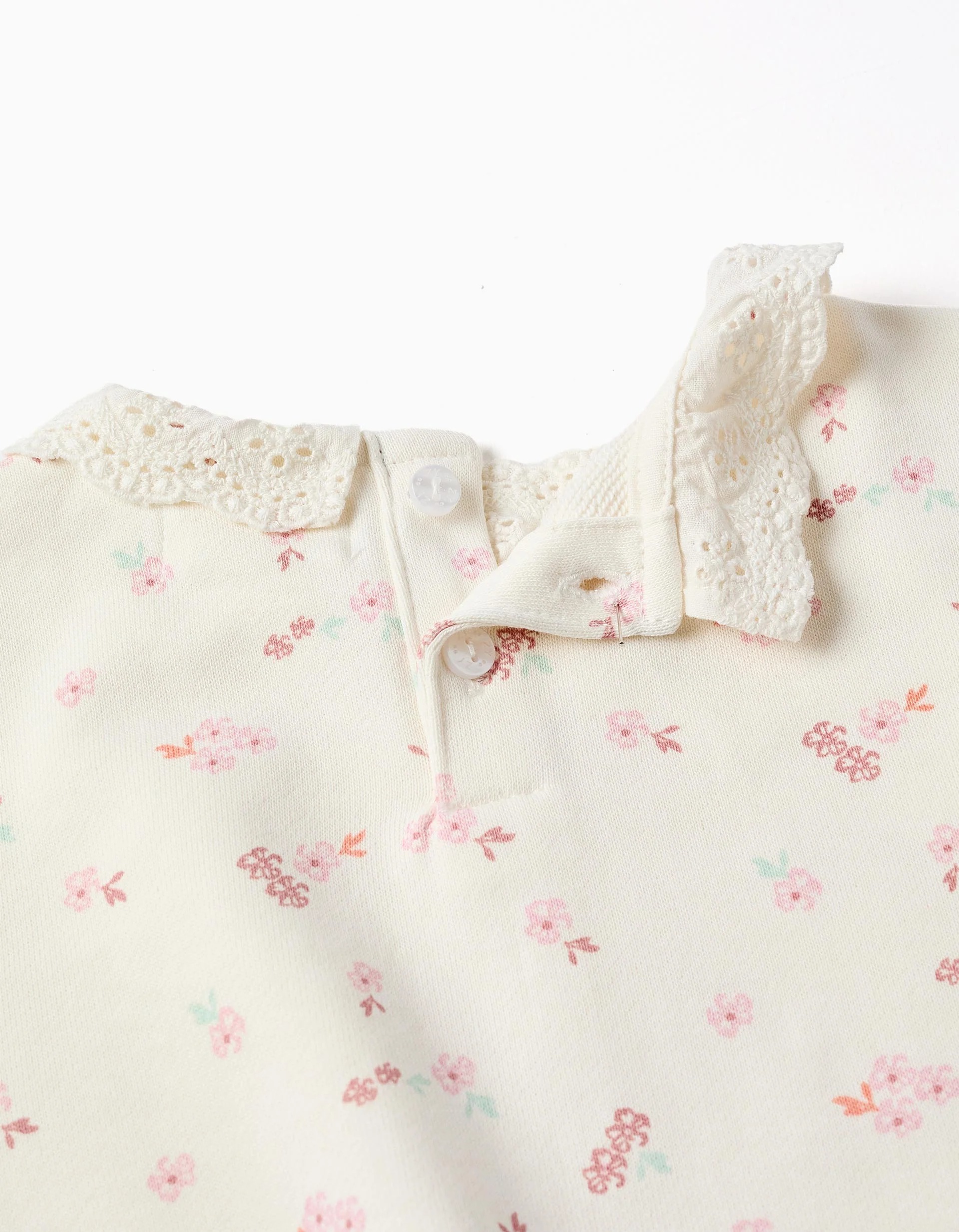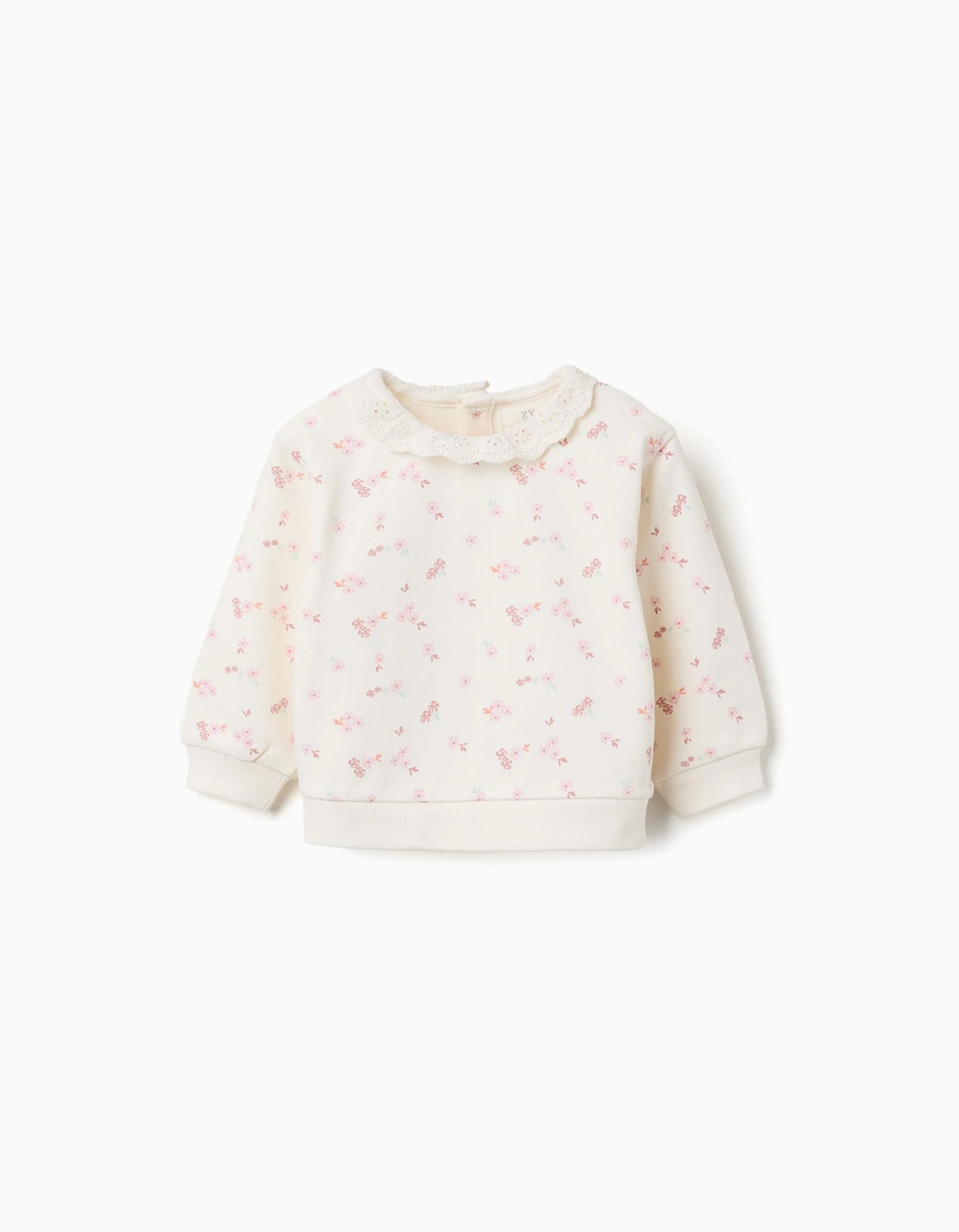 Sweat-shirt en coton blanc à fleurs et broderie anglaise pour bébé fille