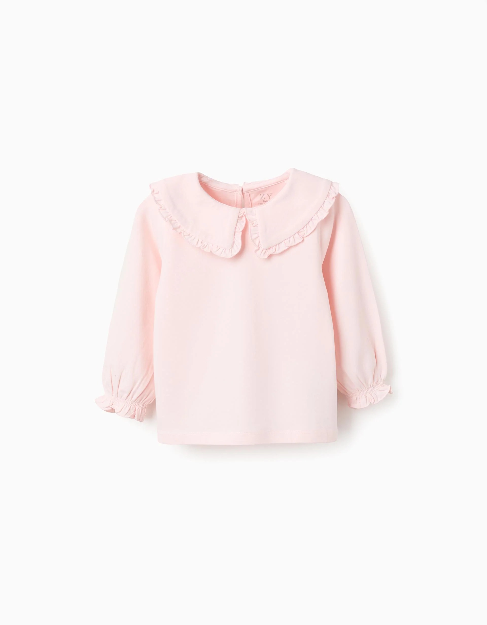 T-shirt à col Claudine et volants pour bébé fille, rose