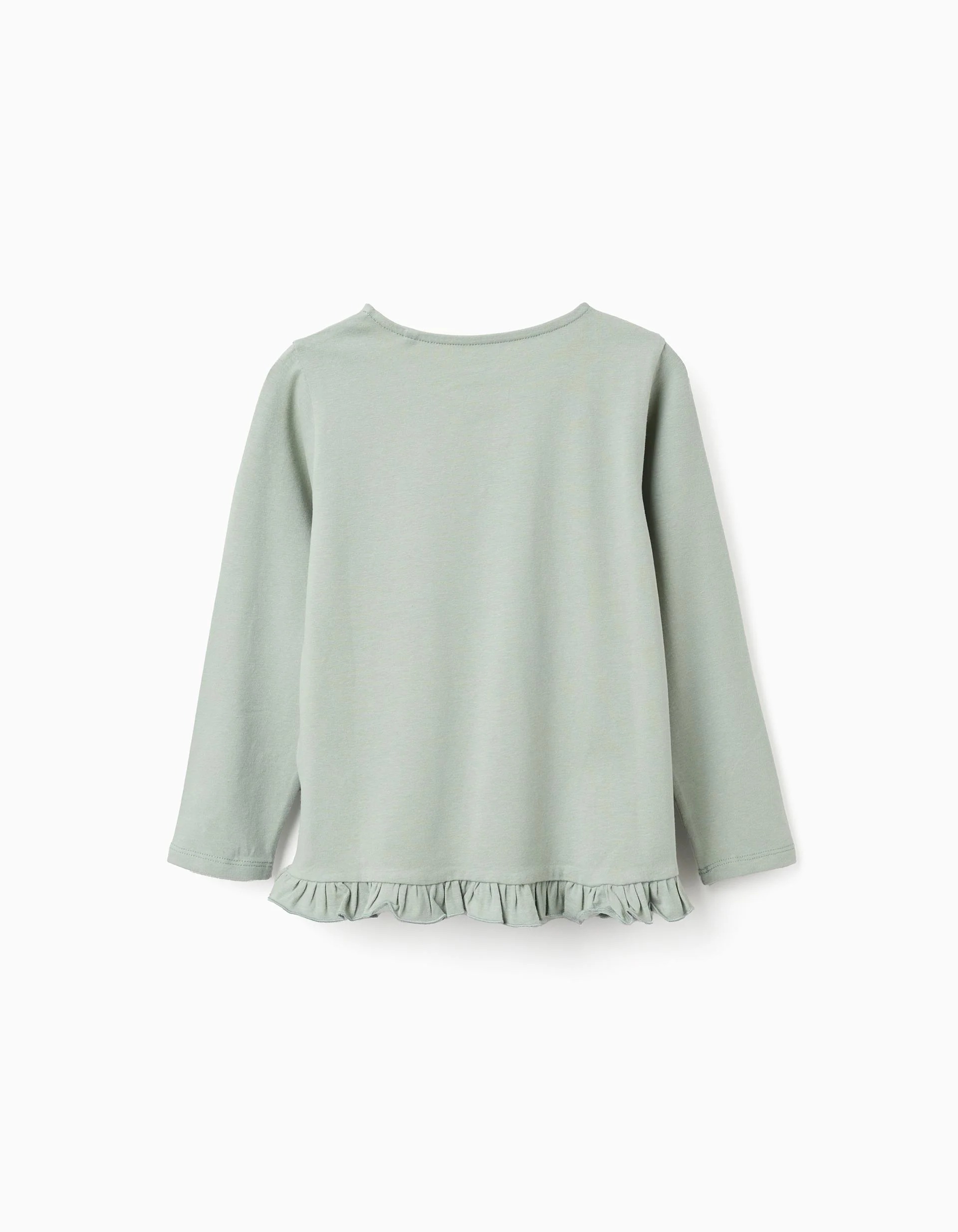 T-shirt à manches longues avec imprimé fleur et volants pour filles, vert