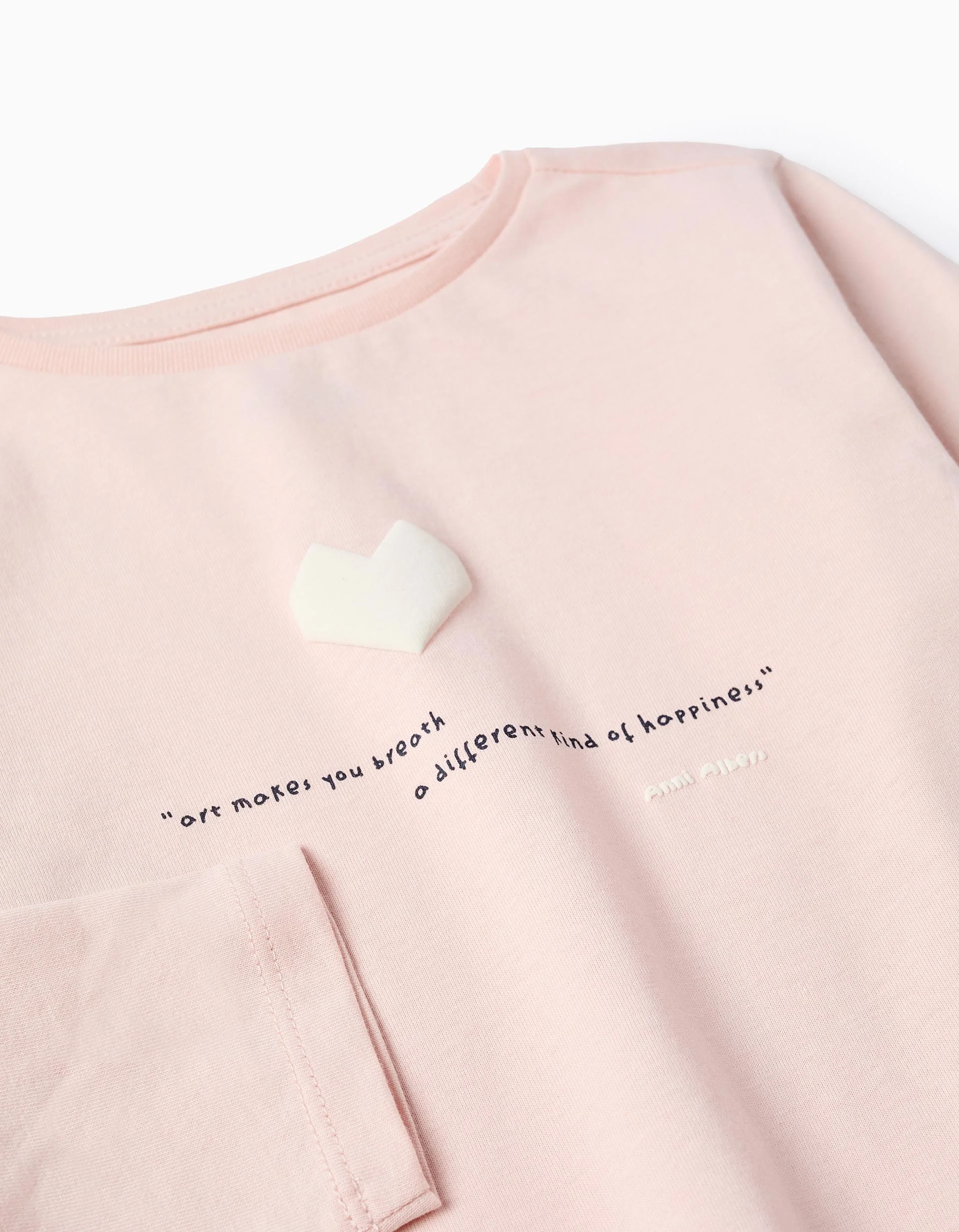 T-shirt à manches longues pour filles, rose, imprimé en relief