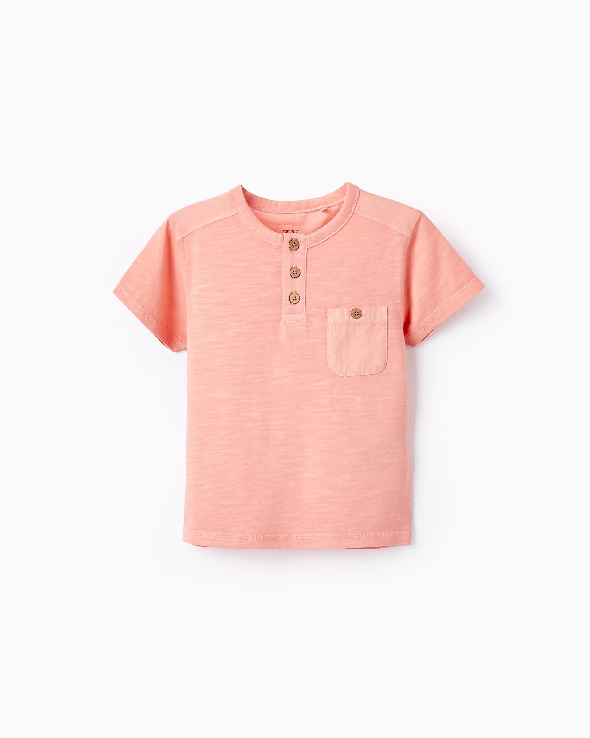 T-shirt en coton avec poche bébé garçon, corail