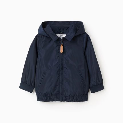 Veste coupe-vent avec capuche amovible pour les petits garçons, bleu foncé
