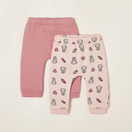 2 Cotton Trousers with Fleece Interior for Newborn Baby Girls, Pink
