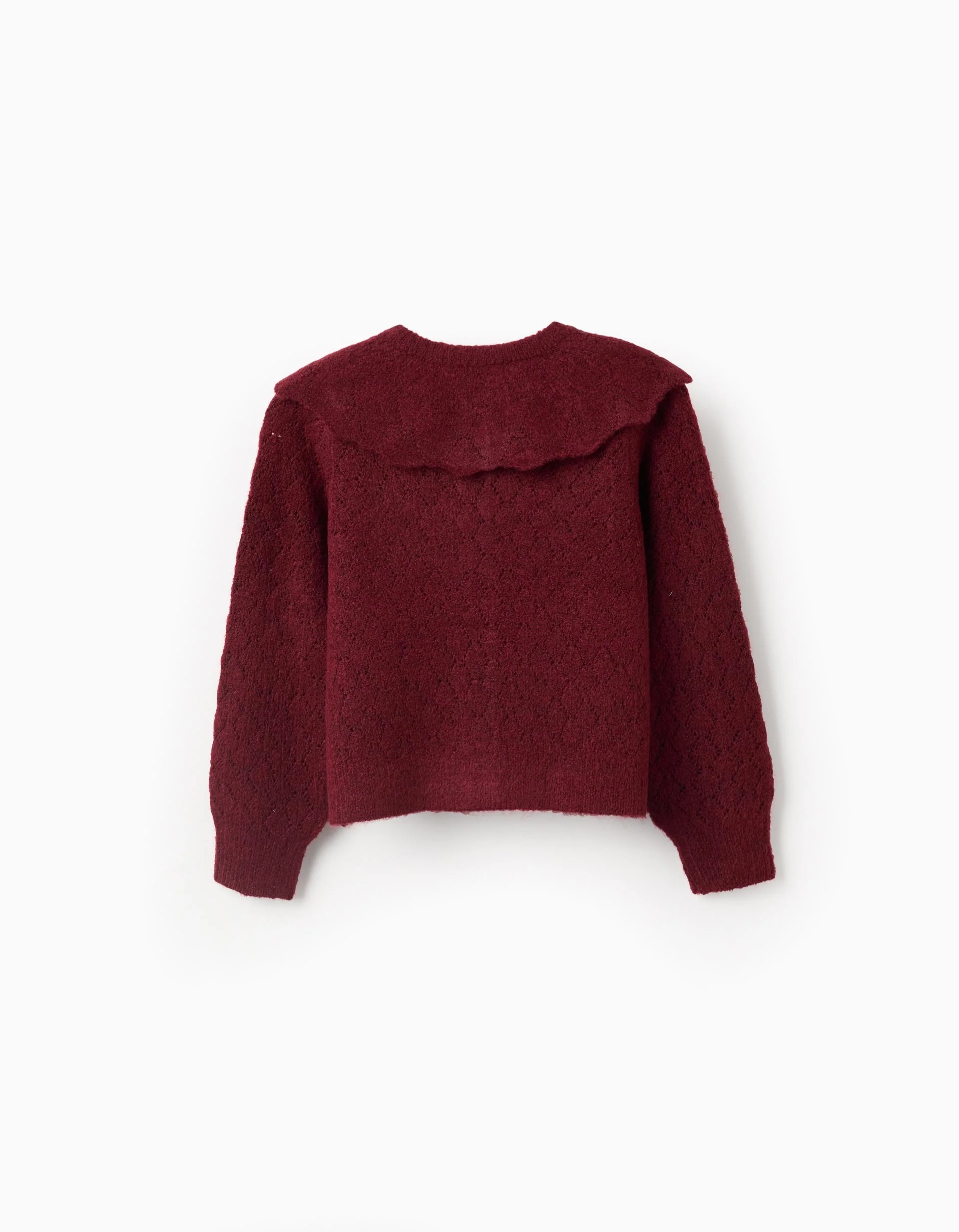 Veste tricotée ouverte avec col à volants pour filles, bordeaux
